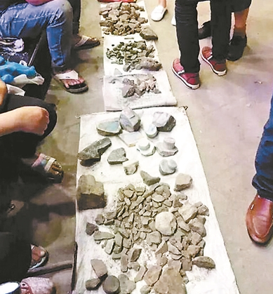 第二天中午,李先生带着头一天挖到的“宝贝”在施工工地一侧摆摊,“有10多个人也在那里卖”,李先生说,自己的生意一般般,两块“拳头大”的玉石卖出去了,一个1000块钱成交,另一个200块钱,而“钢币”大小的,则“一个都没卖出去”。